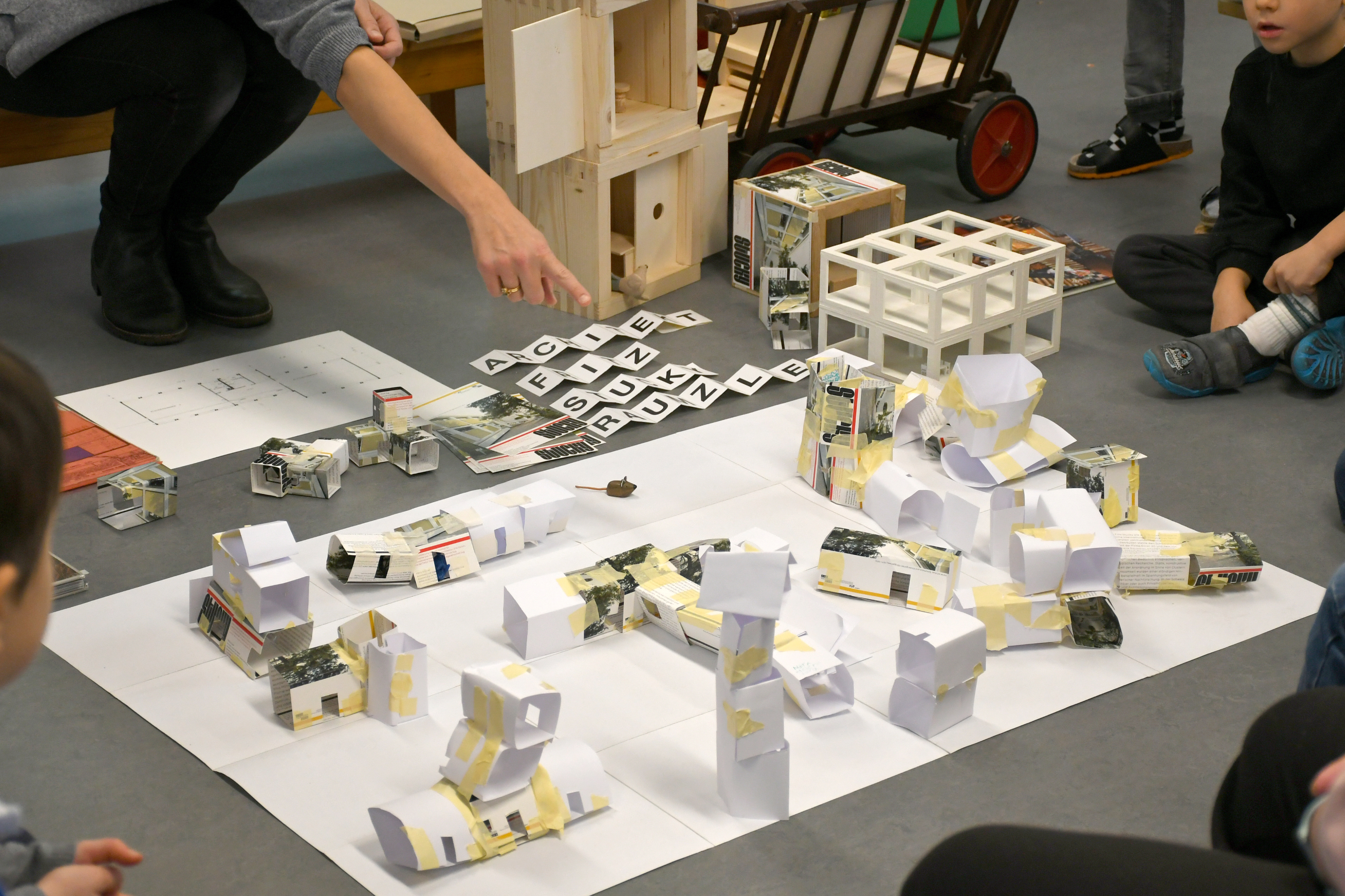 Ausgangspunkt war die Architektur von Schulhaus und Kindergarten Hänggeliweg in Zug. Das Gebäude im Raumzellensystem wurde 1972 von dem Zuger Architekten Fritz Stucky entworfen und ist heute als schützenswertes Denkmal eingestuft. Die Kinder bauten Modelle von Raumzellen und fügten diese zu einer Raumabfolge zusammen.